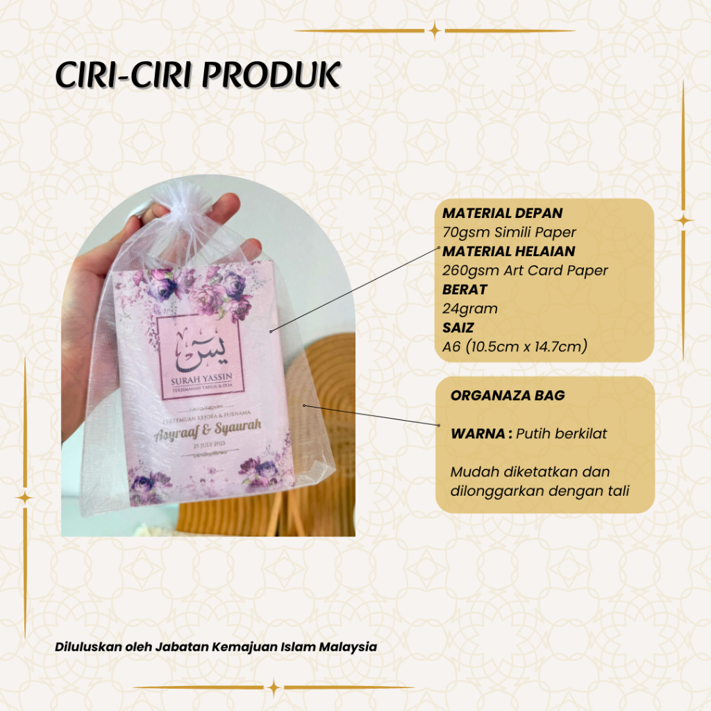 (Bundle of 10) TheHadaya Yassin dan Tahlil dan Organza Beg (Siap Packing) Doorgift Murah Kahwin Aqiqah Tahlil