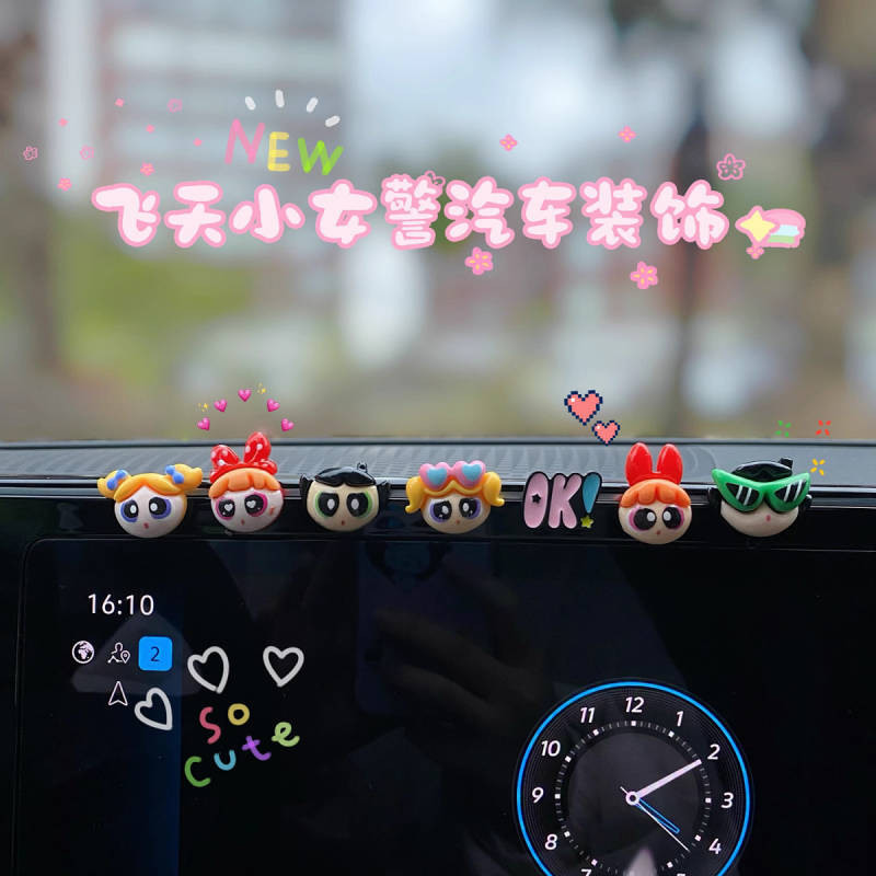 The Powerpuff Girls Car Decoration Car Interior Girl Cute Cartoon Display Dashboard Small Jewelry Patch rKE1