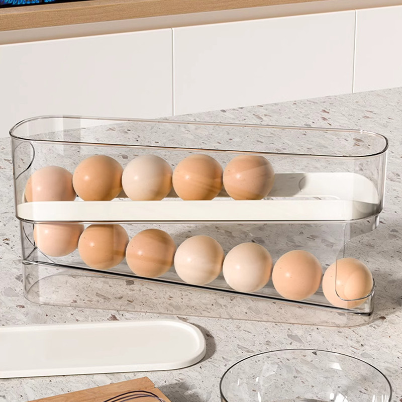 The Side Door of The Refrigerator Sliding Egg Container with Lid Rolling Refrigerator Egg Dispenser Storage Rack Egg Tray