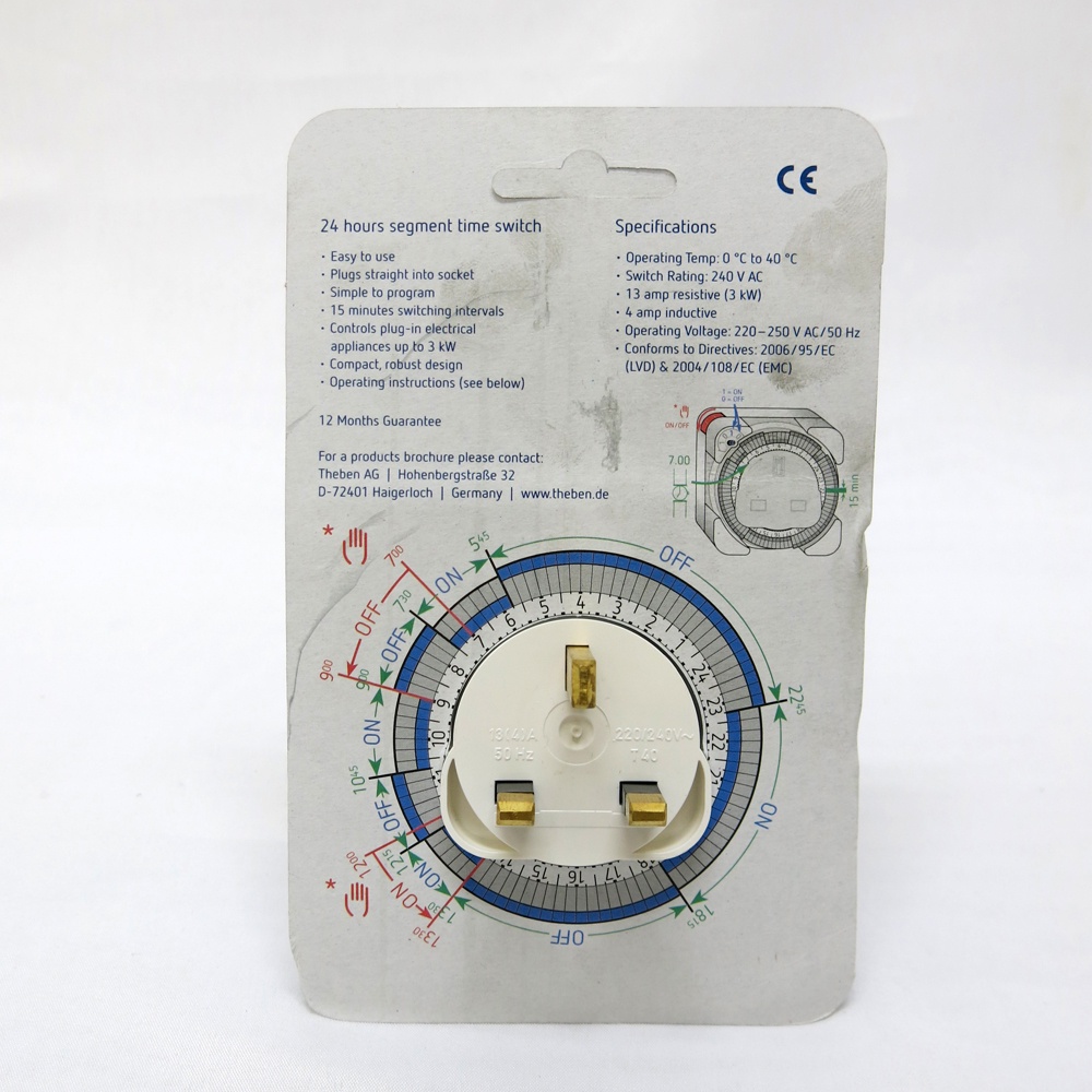 Theben T026 Suis Pemasa Plug-In 24 Jam 13A Jenis Segmen [Timer Switch Germany]