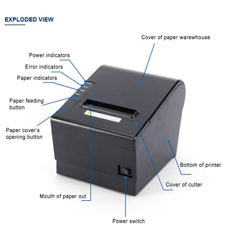 Thermal Receipt Printer 80mm Print Resit Support Cash Drawer Retail Cafe POS System USB Bluetooth