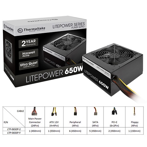 Thermaltake LitePower 450w 550w 650w Power Supply - 3 Yrs Warranty
