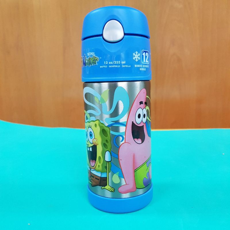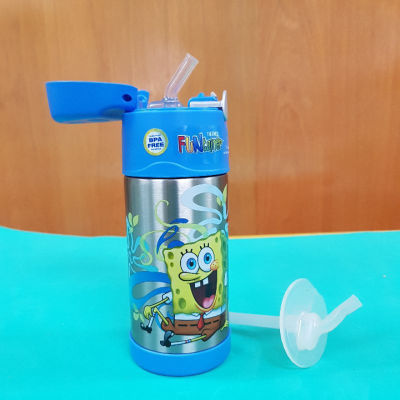 Thermos SpongeBob Stainless Steel Insulated Straw Bottle 355ml FOC 1 set Replacement Straw