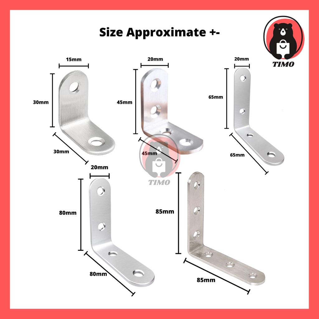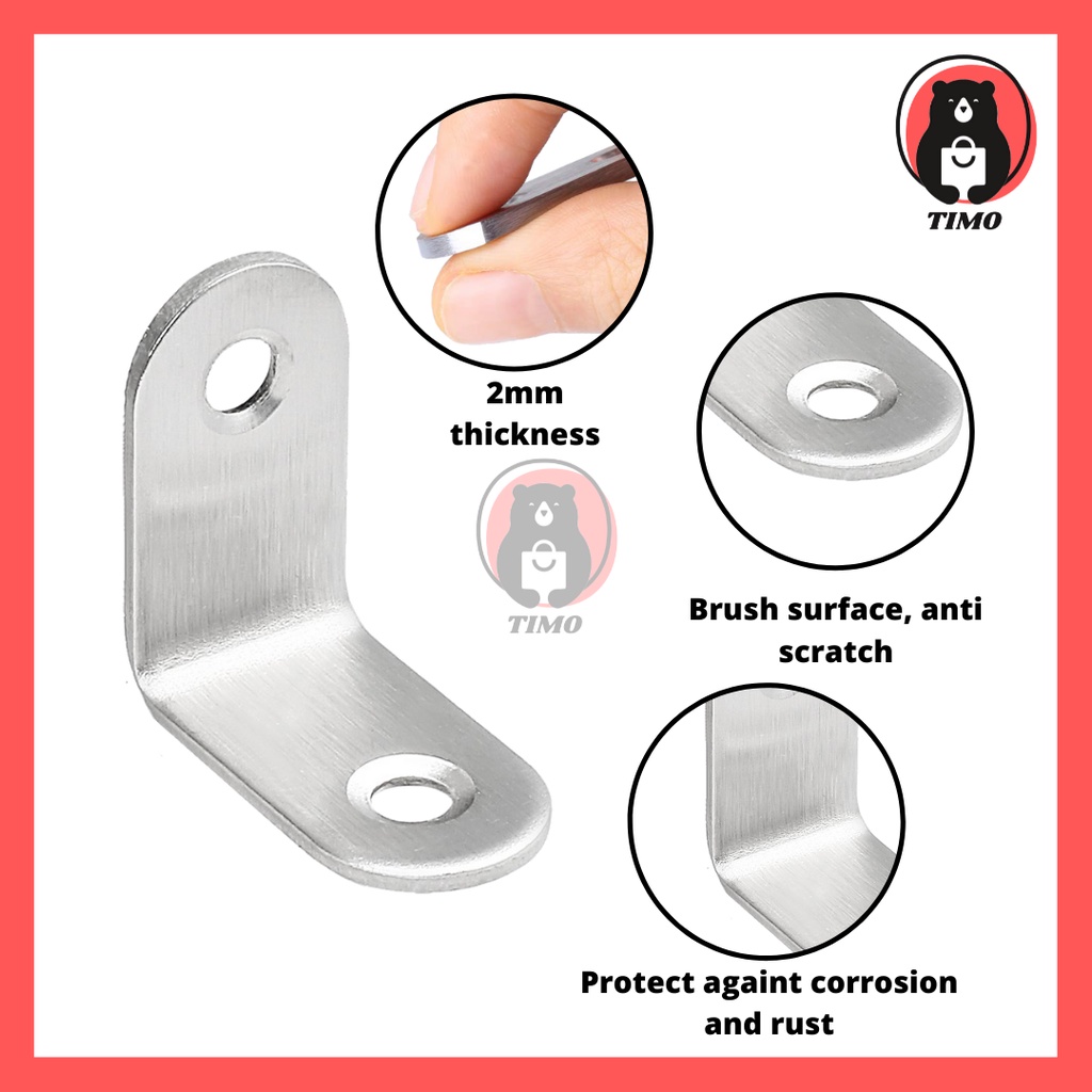 Thickness 2mm Stainless Steel SUS304 Corner Bracket Right Angle L Bracket for Shelves Furniture Wood