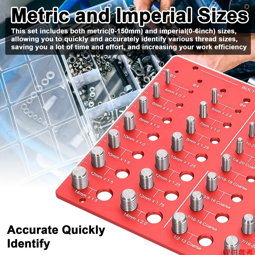 Thread Nut Bolt Size Checker Aluminum Alloy Gauge for Metric and Imperial Sizes Practical Thread Gauge Identifier Gauge Easy Size Identification Tool