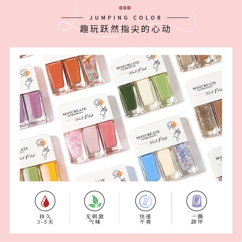 Three Colours Nail Polish No-bake Gel Nail Polish Long-lasting Quick-drying Non-toxic Peelable Nail Polish For Nail Art