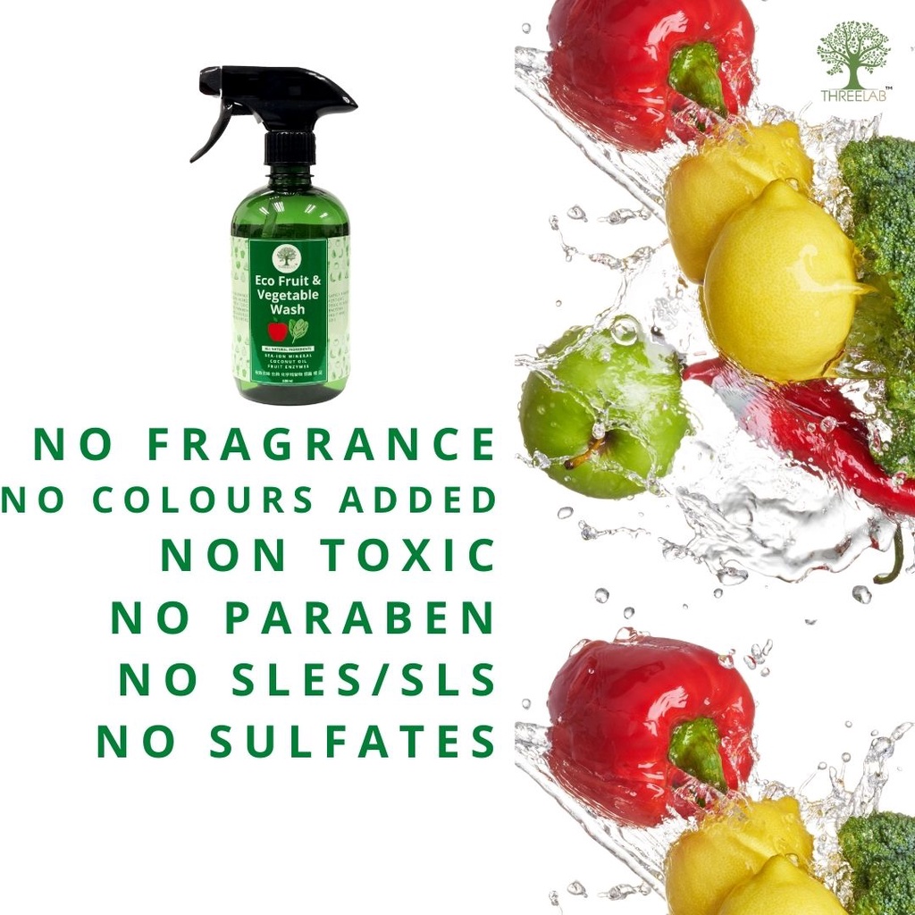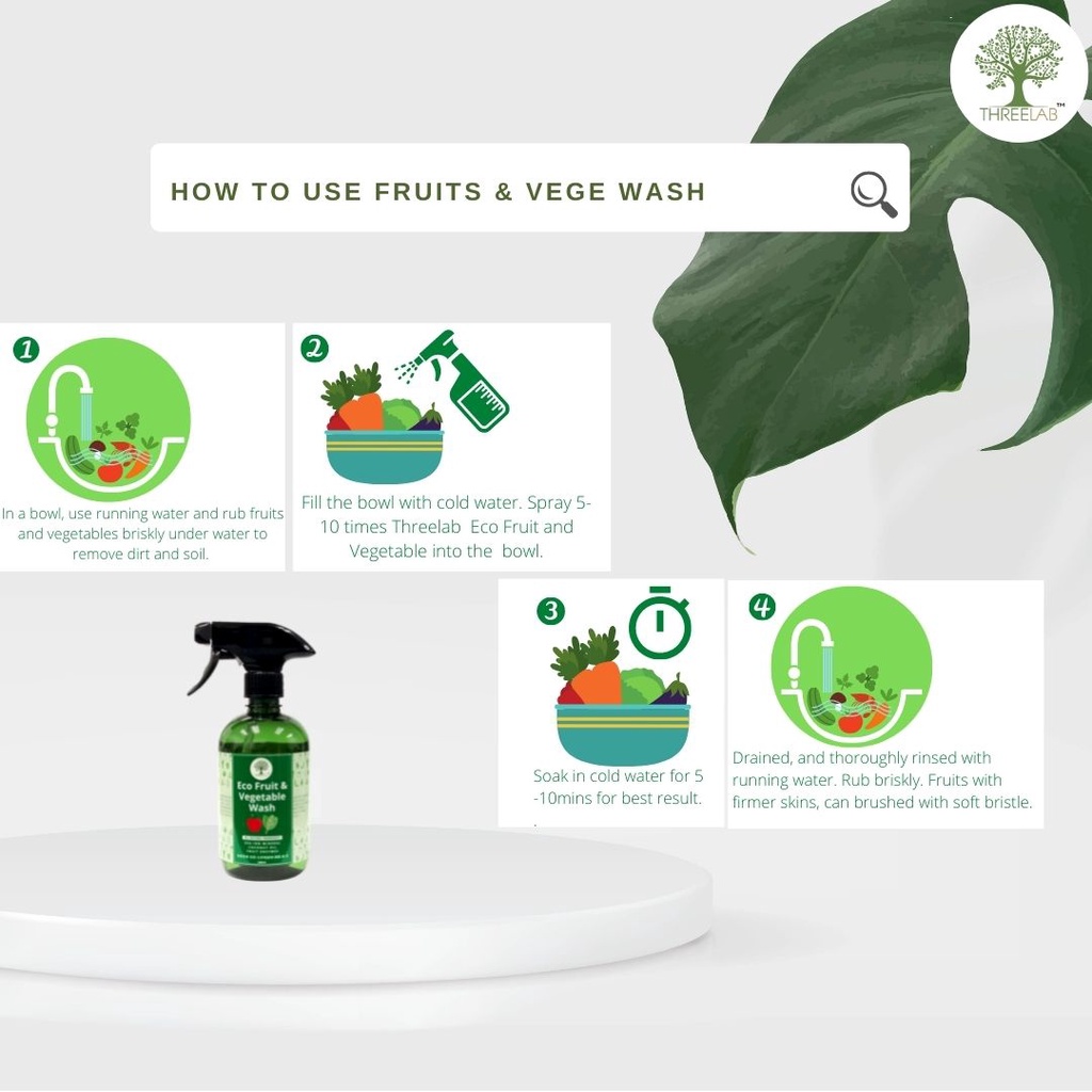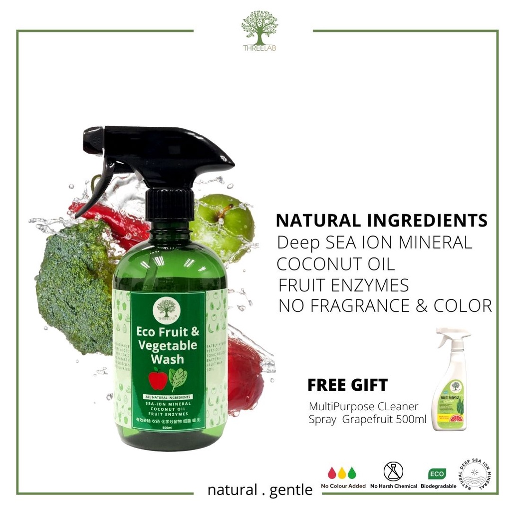 THREELAB Fruit And Vegetable Wash With Enzymes Safely Remove Bacterial Toxic Residues 500ML Pembersih Sayur Dan Buah