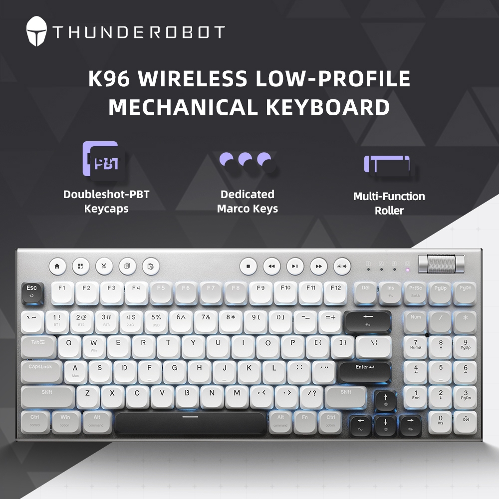 Thunderobot K96 Wireless Low-profile Mechanical Keyboard Wired Bluetooth 2.4G Wireless PBT Keycaps Dedicated Marco Keys Multi-function Roller