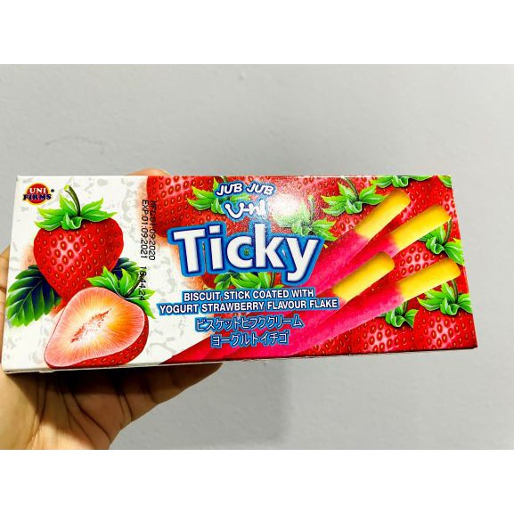 Ticky Two Tone Biscuit Yoghurt Strawberry Flavour Flake imported from Thailand (20g)