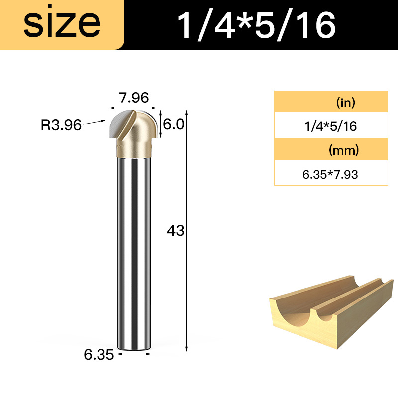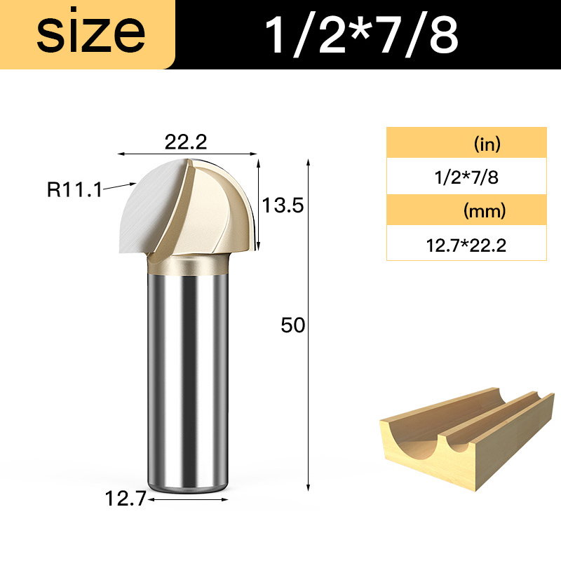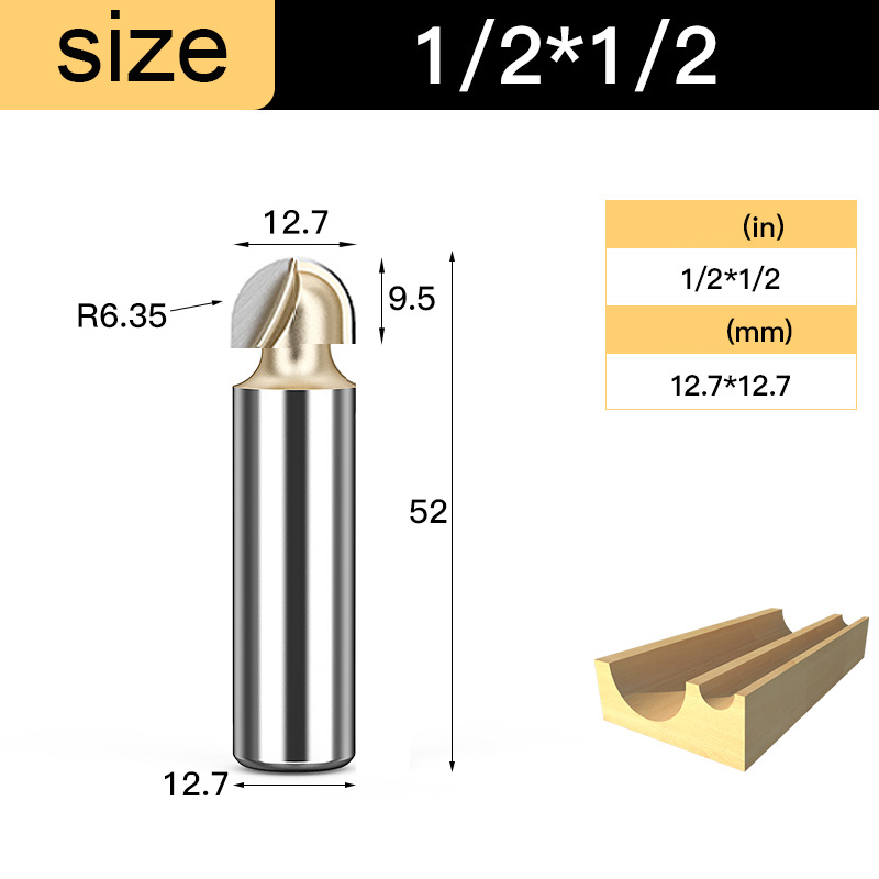 Tideway Woodworking Round Cove Bit Tungsten Carbide CNC Tools Router Bits for Wood 1/2 1/4 Inch Shank Milling Cutter End Mill