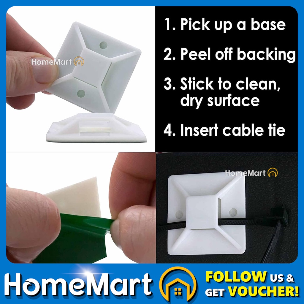 Tie Mount Self Adhesive Stick On Mount For Cable Ties Routing Looms Wire & Cable Base Clamps Clip Removable Wall Bracket