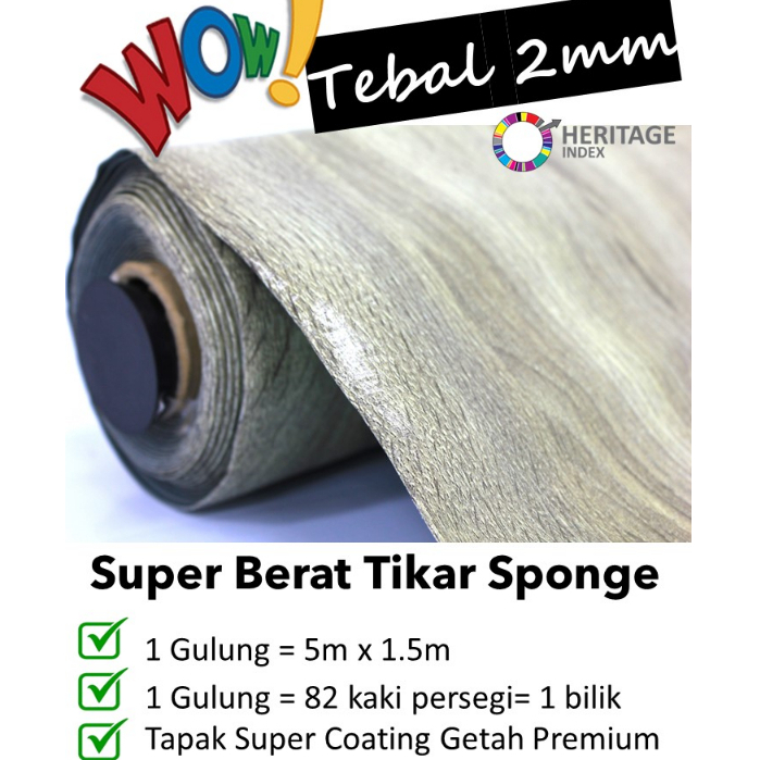 Tikar Getah 10m x 1.5m (5 kaki) Tebal 0.4mm Tikar Getah Sponge 2mm PVC Vinyl Carpet Flooring Karpet