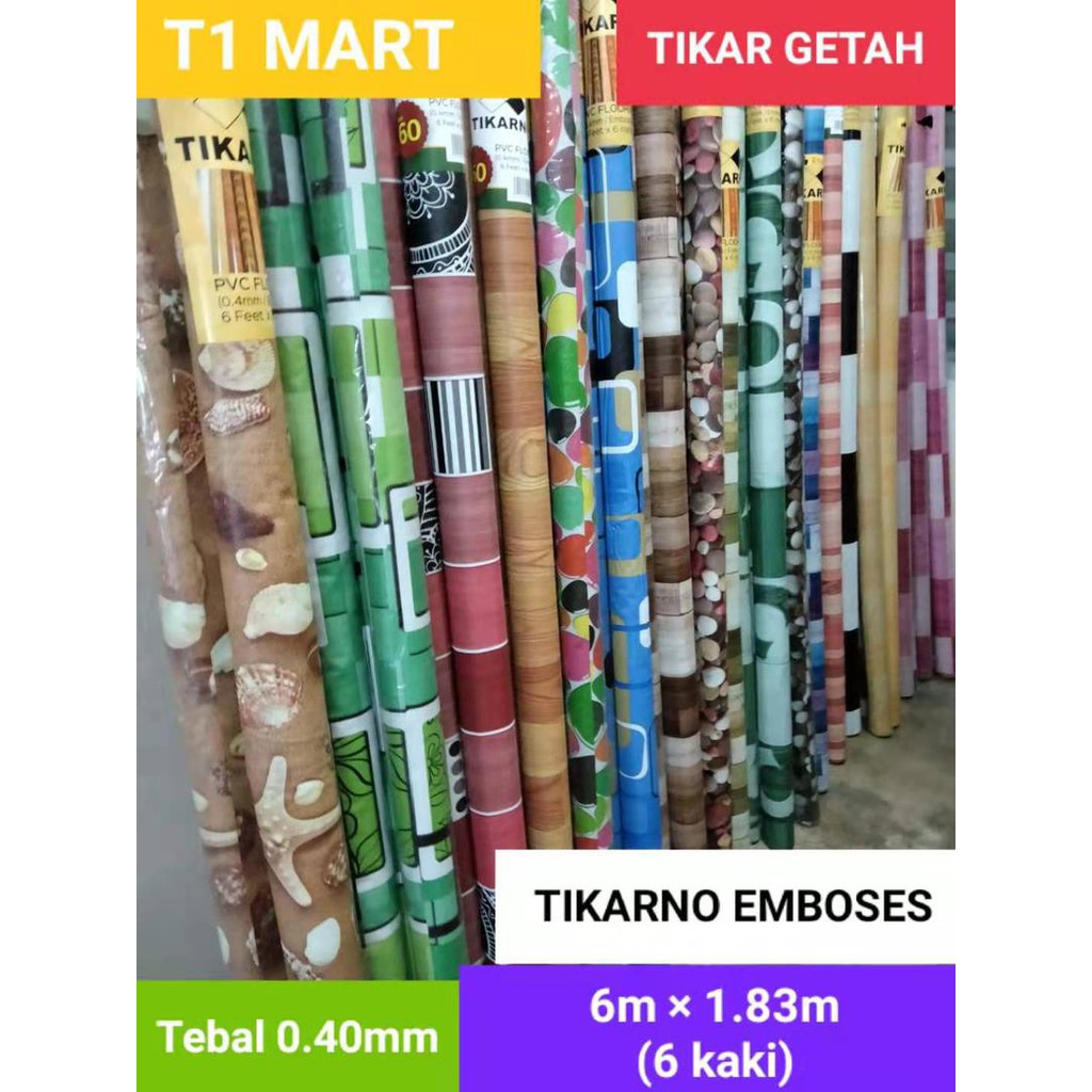 Tikar Getah PVC Tikarno 6M (6 Kaki) Tebal 0.4mm /Gulung Siap Potong PVC Floor Mat