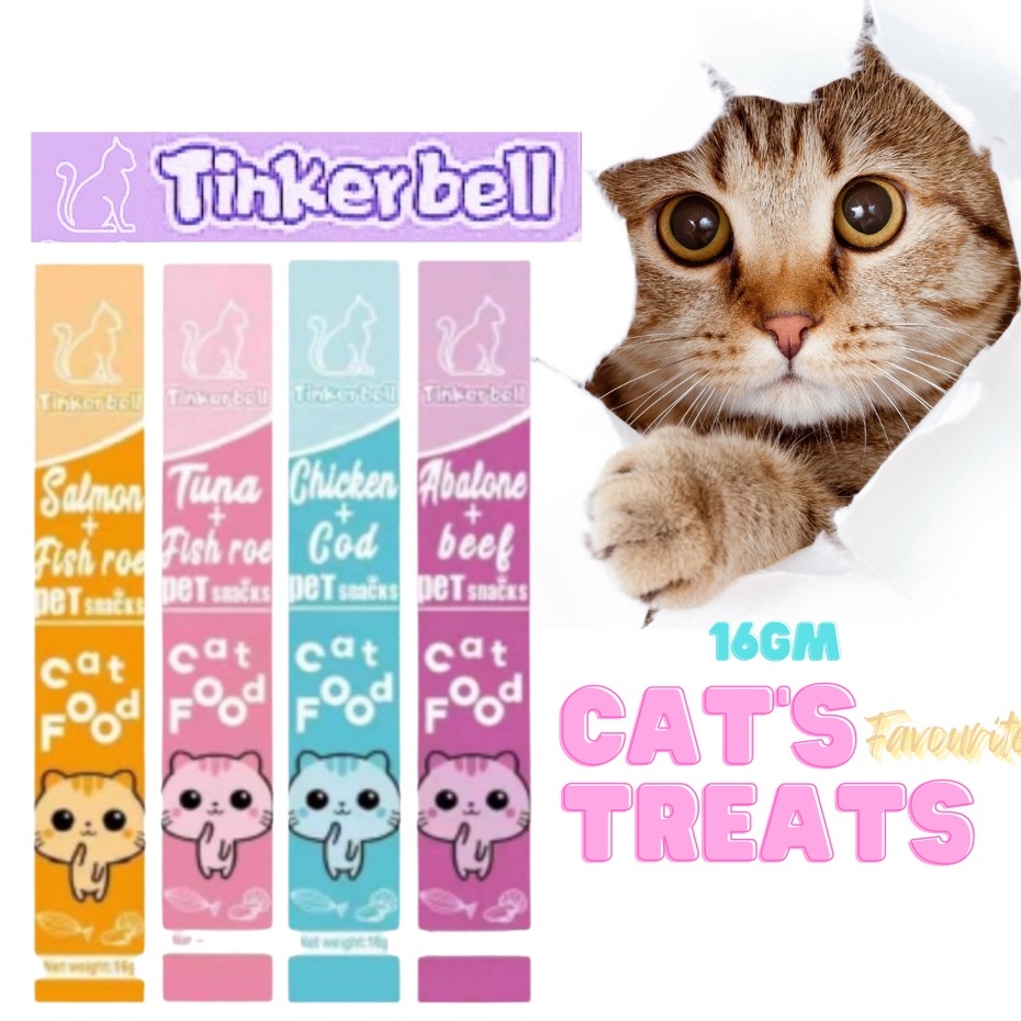 Tinkerbell Premium Cat Treats Cat snacks 16gm Makanan Basah Snek Ringan Kucing Berkhasiat tanpa pengawet 营养丰富宠物零食 猫条