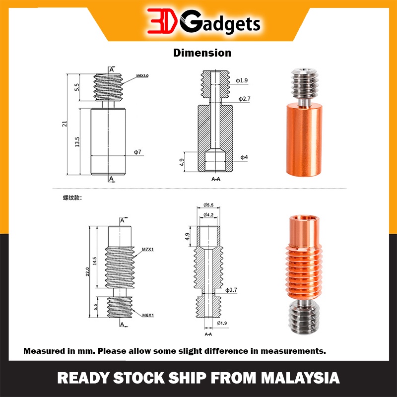 Titanium Bi-Metal Heat Break Compatible for CR10, CR10-Smart, CR6-Max and Ender Series- 1.75mm filament 3D Printer