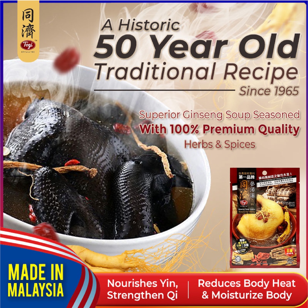 Togi Soup Spice 35g, 2x Superior Ginseng +2x Herbal Broth - Nutritious Soup for Low Immunity, Elderly, Office Workers