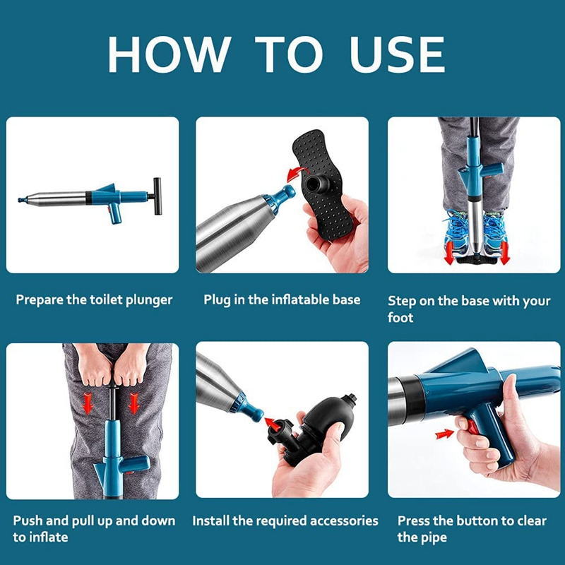 Toilet Plunger High Pressure Air Drain Blaster Sink Pipe Pump Clog Remover Multifunctional Inflatable Toilet toilet pommel Stailess Steel