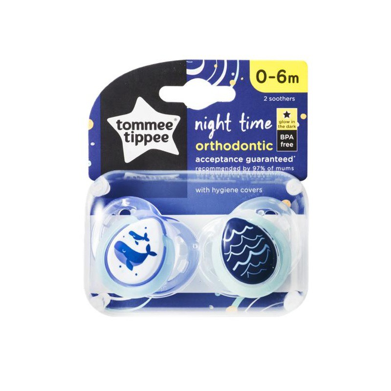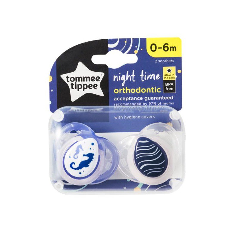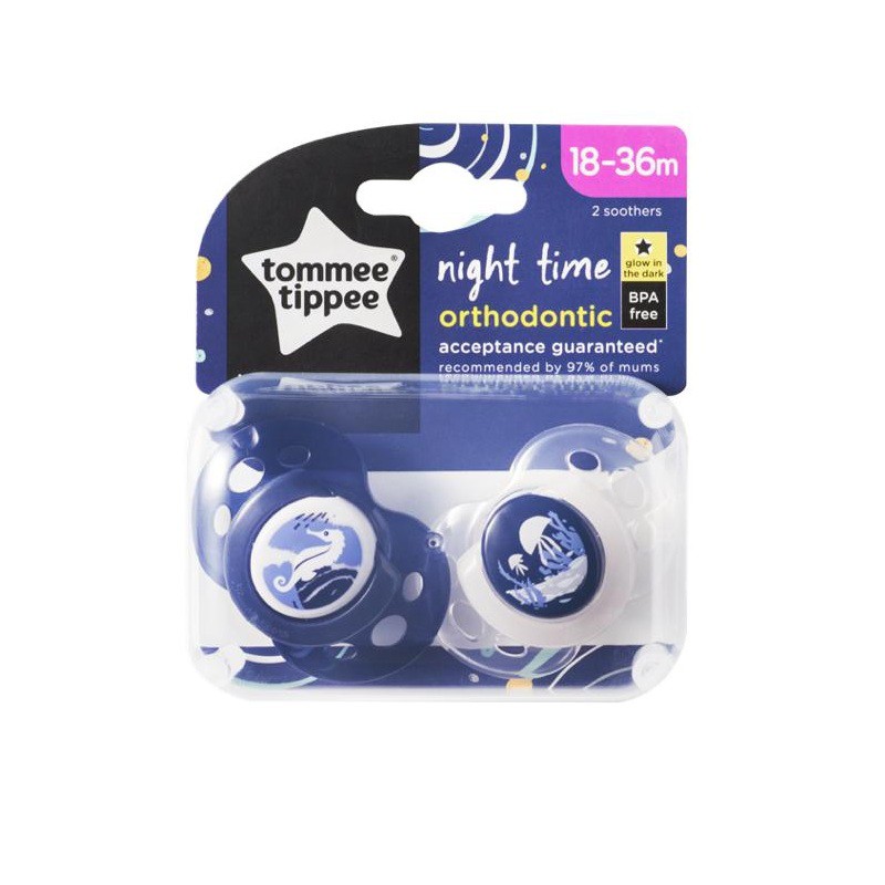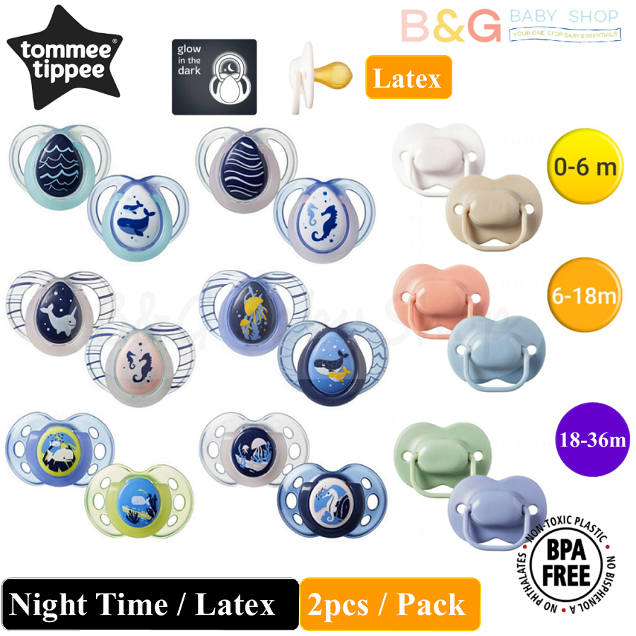 Tommee Tippee Night Time Latex Orthodontic Baby Soother / Pacifier / Puting Bayi 0-6m / 6-18