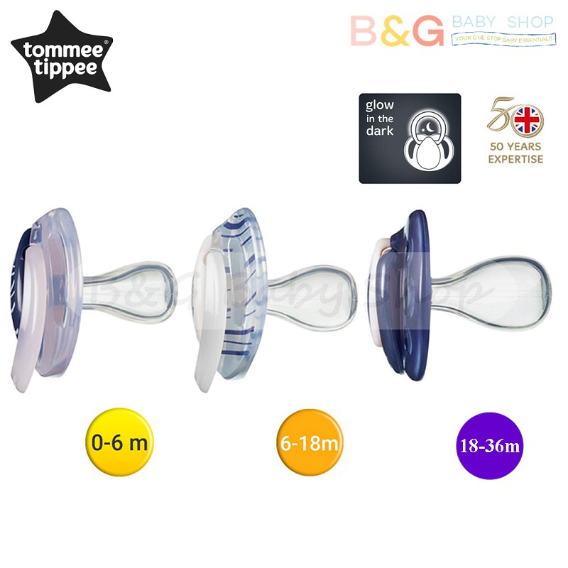 Tommee Tippee Night Time Latex Orthodontic Baby Soother / Pacifier / Puting Bayi 0-6m / 6-18