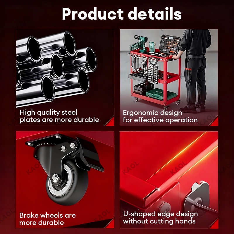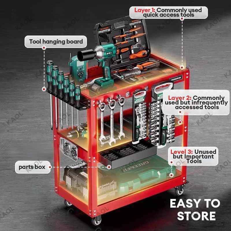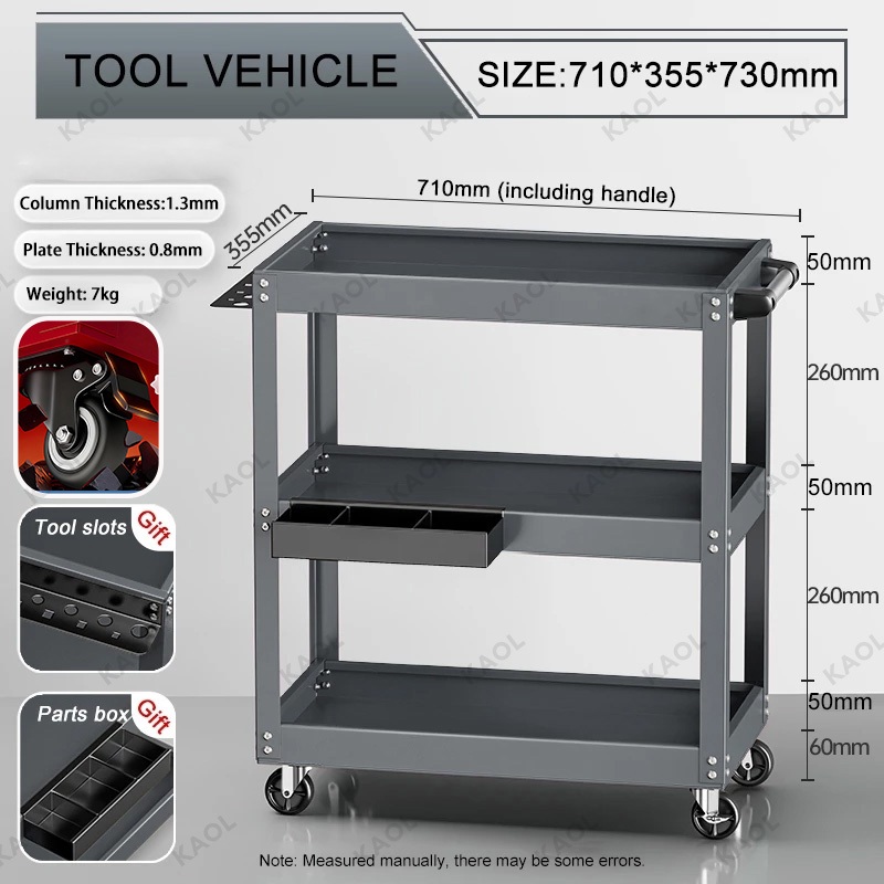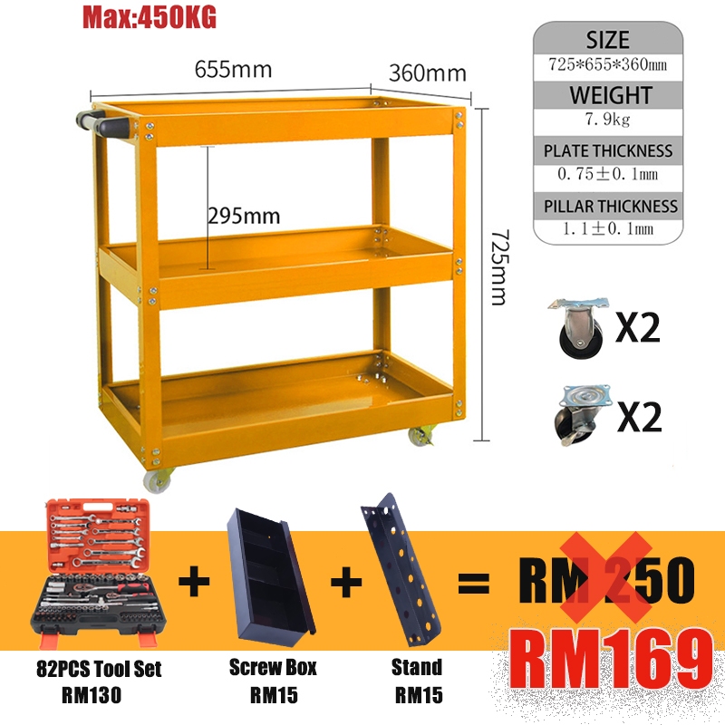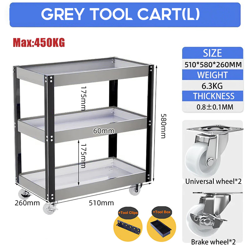 Tool Cart Trolley 3 Layer Service Trolley Heavy Duty Metal Steel Tools Shelf Storage Toolcart Layer