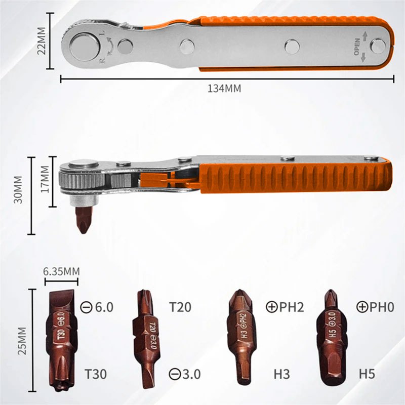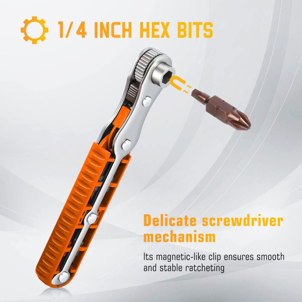 ToolEvo 1/4-inch Drive Mini Ratchet Driver Set Tight Reach High Torque Right Angle EDC Tool 90-degree Mini Offset Revers