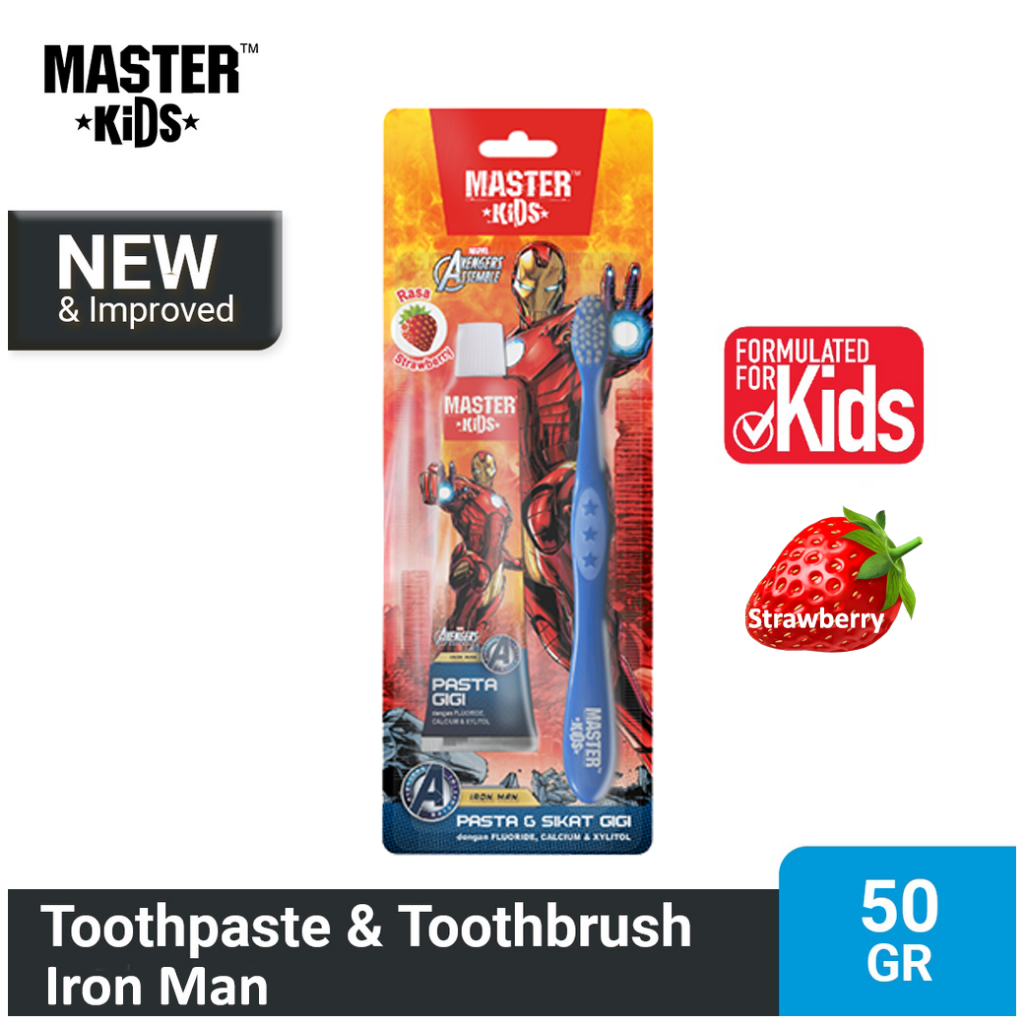 Toothpaste & Toothbrush/Master Kids/Iron man Tube Pack 50gr Strawberry