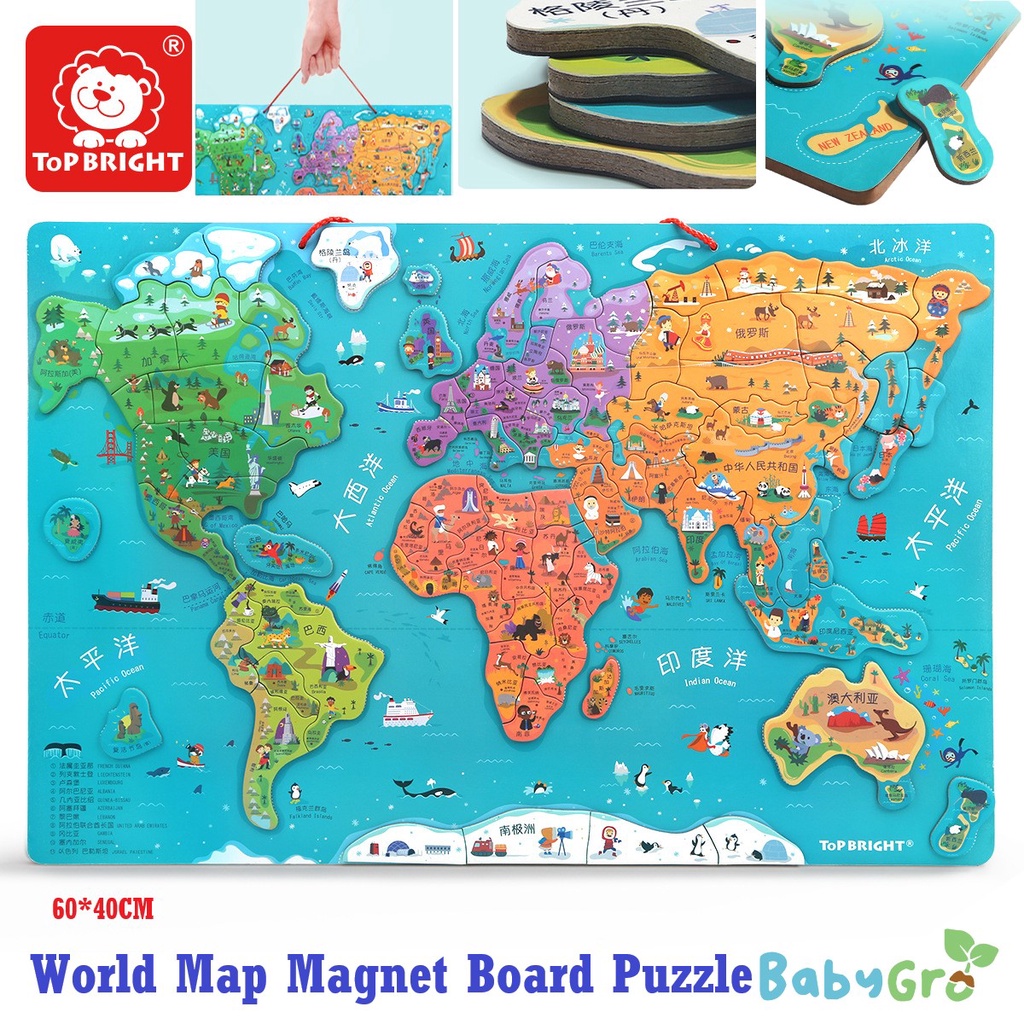 Top Bright World Map Magnetic Board Jigsaw Puzzles Learning Education Kids Puzzle Jigsaw Toy 88pcs