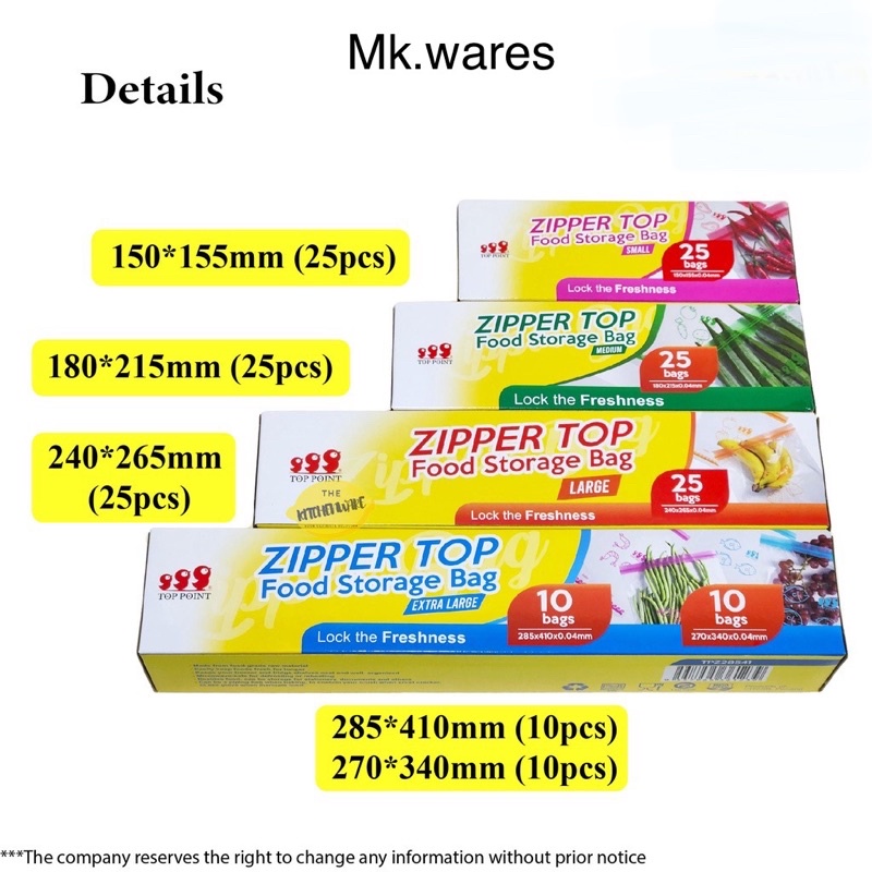 Top-POINT Zipper Top Food Storage Bag/Food GRADE/Zipper Bag/PLASTIC buah-buahan