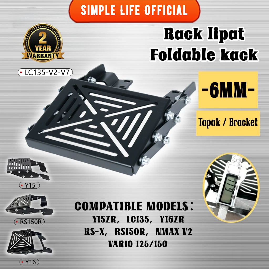 TopMotor Y15 Y16 RS150 LC135 V2-V8 Foldable Adjustable Heavy Duty Top box Givi Box Rack Monorack Lipat Box Kotak Bracket