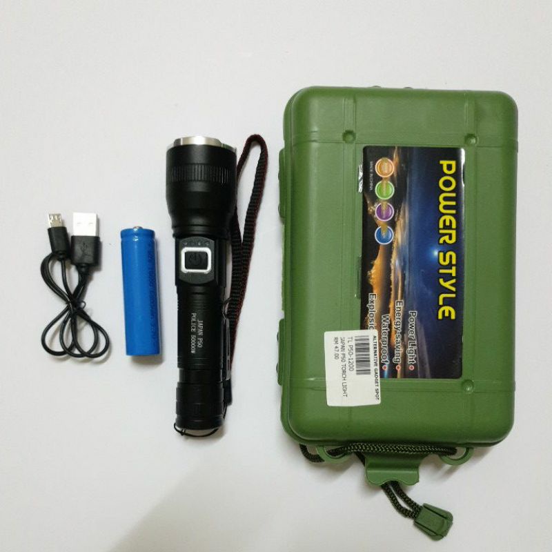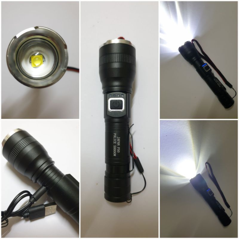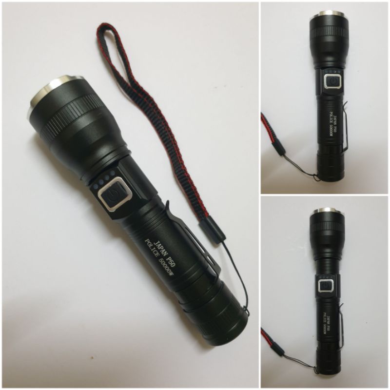 Torchlight Police 50000W Japan P50 (A) 3 light modes Zoom in 200m rechargeable battery