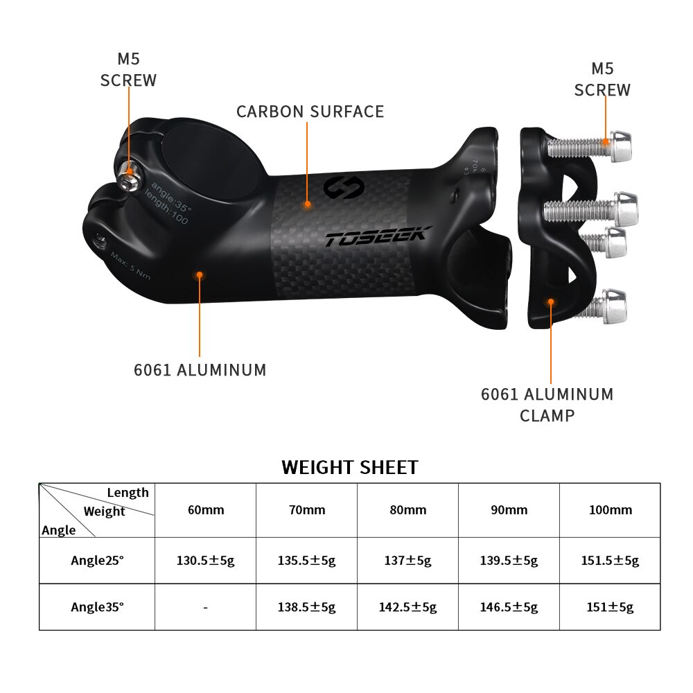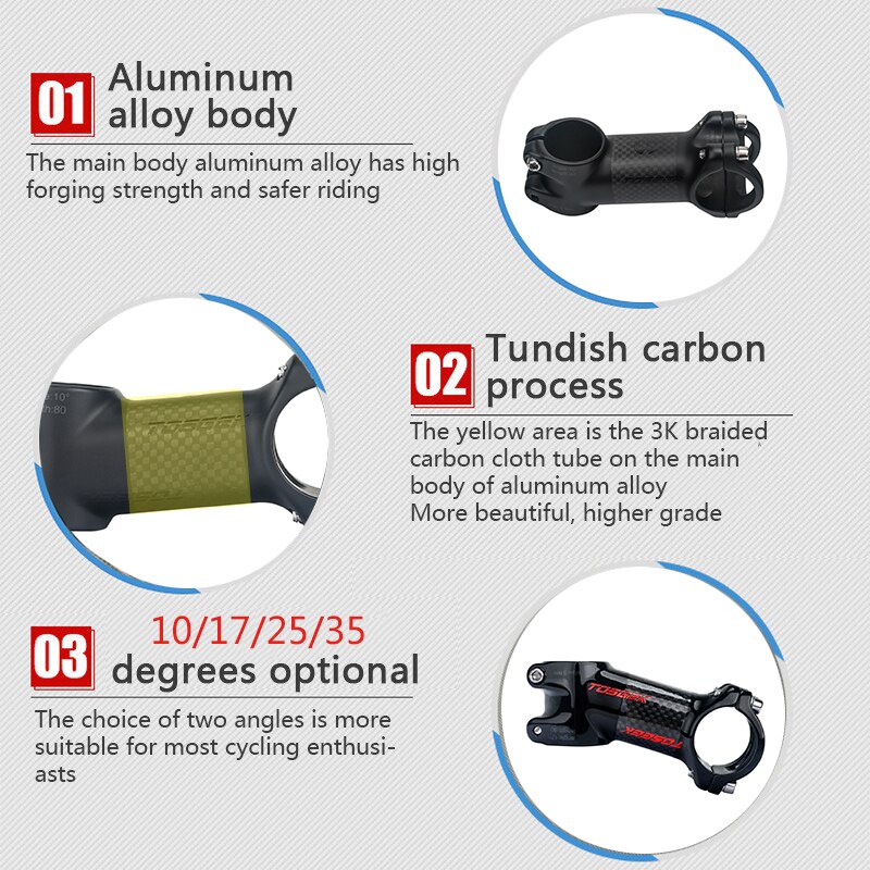 Toseek Bicycle Stem 6 17 25 35 Degree Carbon Stems 70 80 90 100mm Mtb Handlebar Stem Lightweight Bike Table Cycling Part
