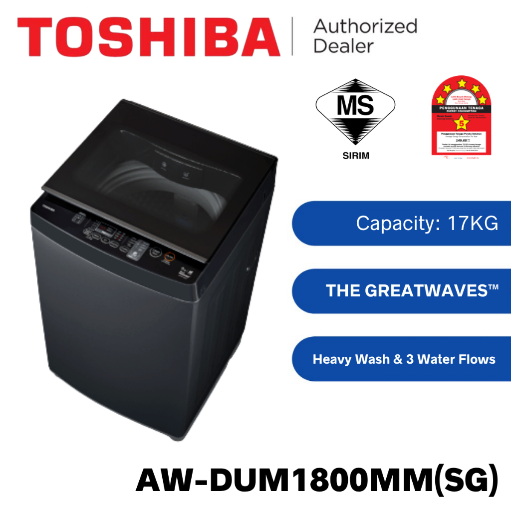 Toshiba 12KG / 13KG / 14KG / 15KG Fully Auto Top Load Inverter Washer AW-DUK1300KM(SG)/ AW-DUM1500LM/ AW-DUM1800MM(SG)