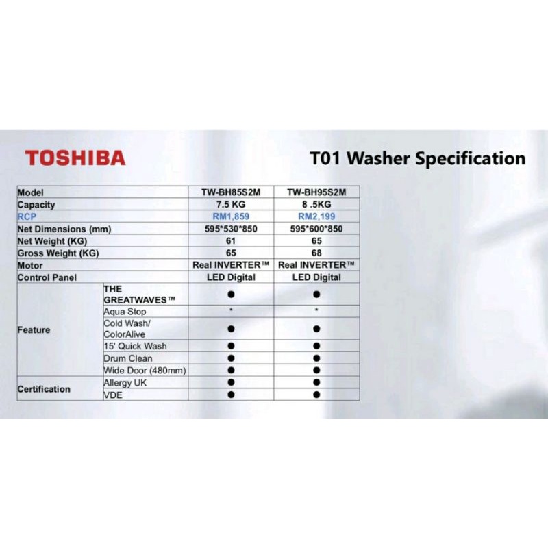 Toshiba 7.5kg Washing Machine (FrontLoad)