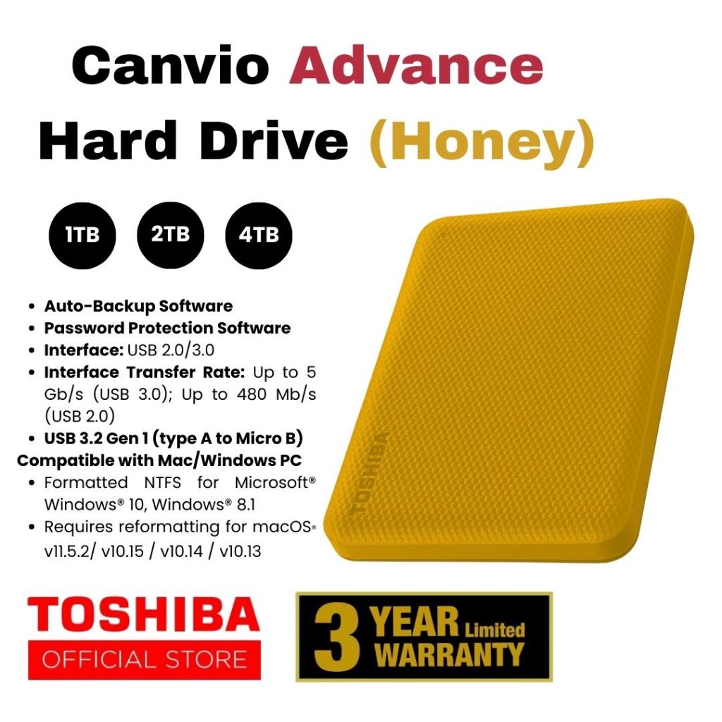 Toshiba Canvio Advance V10 USB 3.2 – Password Protection Hard Disk Mudah Alih Dengan Password (1TB/2TB/4TB)