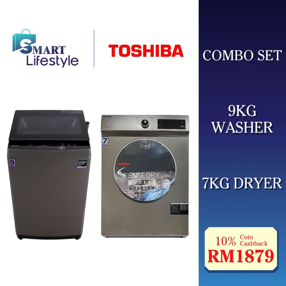 Toshiba 9KG Top Load Washer AW-M1000EM(SG) / COMBO SET Washing Machine (9KG) + Front Load Dryer (7KG) TD-H80SEM(SK)