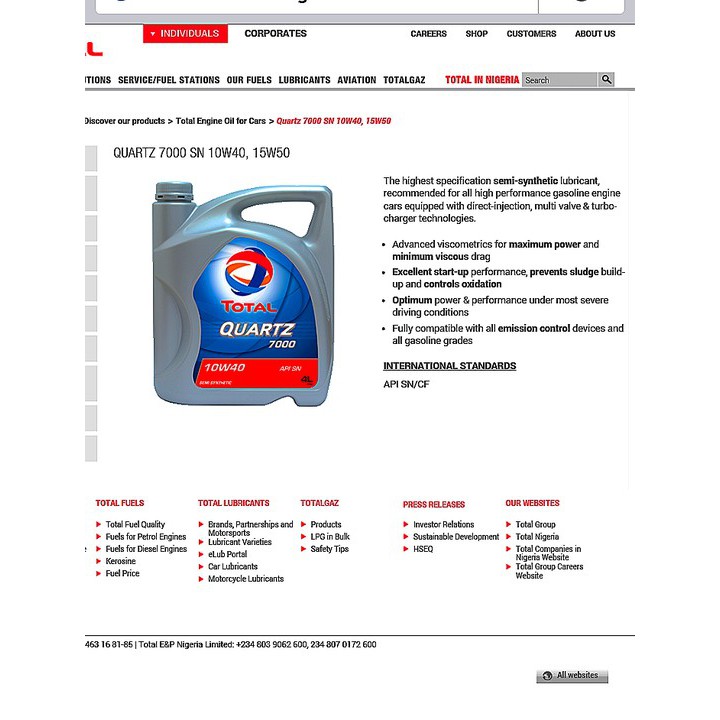 Total Quartz 7000 Semi Synthetic Engine Oil 10W40 (4L)
