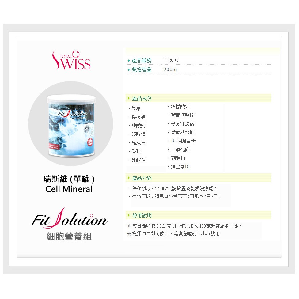 Total Swiss Fit Solution Cell Mineral (200G)