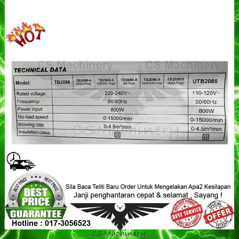 Total TB2086 Blower 800W ( 2 in 1 Blower & Vacuum )