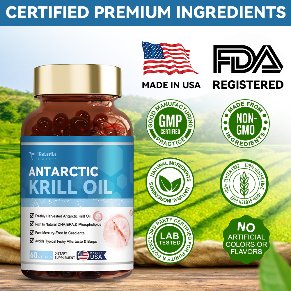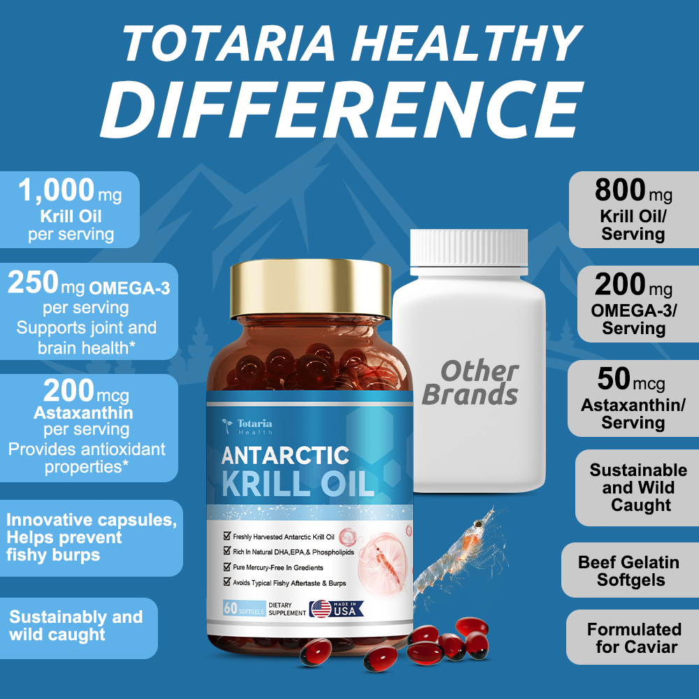 Totaria Antarctic Krill Oil Capsules 1000 Mg With Omega 3 Epa Dha Astaxanthin And Phospholipids Supports Heart Brain Joint Eye Health