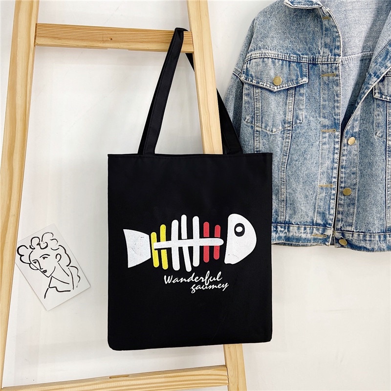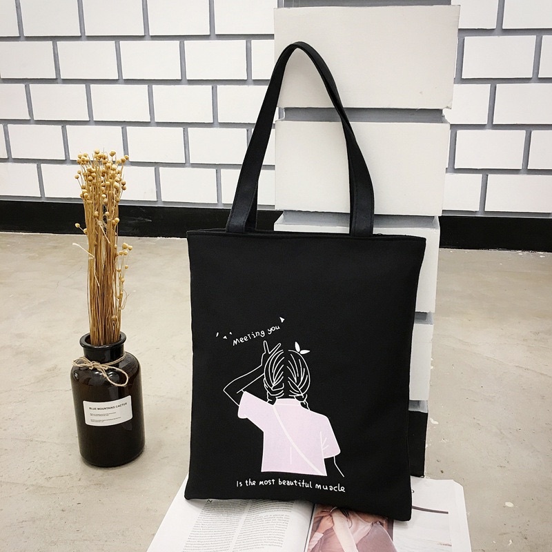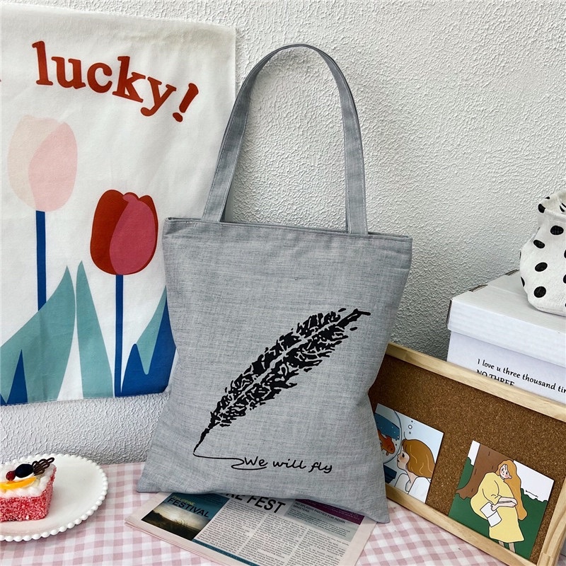 Tote Bag Canvas Bag With Zip Student Tuition Bag Shopping Bag Simple Bag Sekolah Ready Stock