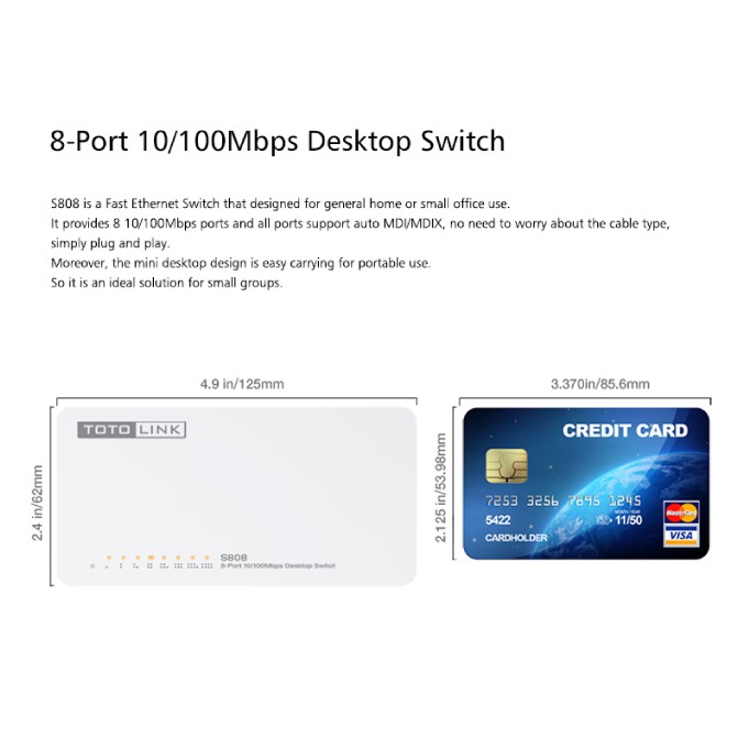 Totolink S808 8-Port 10/100Mbps Desktop Switch