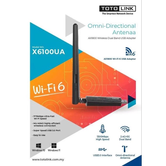 Totolink X6100UA WiFi 6 AX1800 USB Dual Band Wifi Adaptor