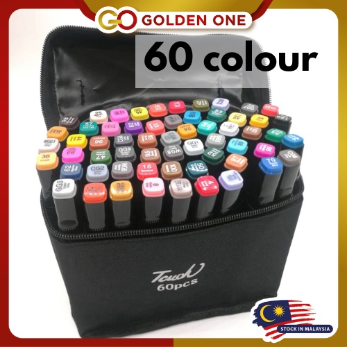 Touch Art Marker (60pcs)Brush Pen Warna Drawing Art Supplies marker pen set Twin Tip Marker Pen color (1set 60pcs)
