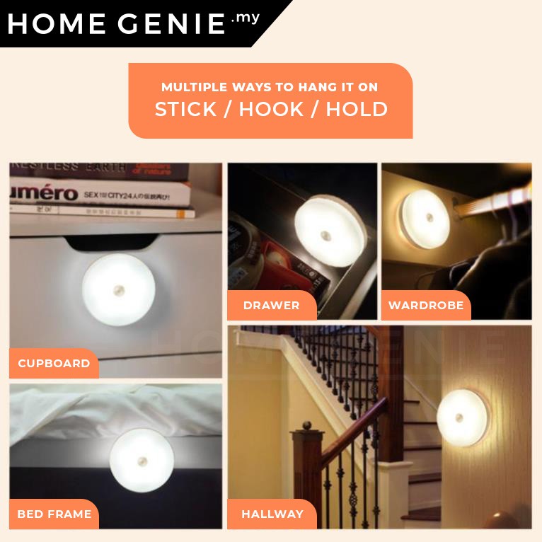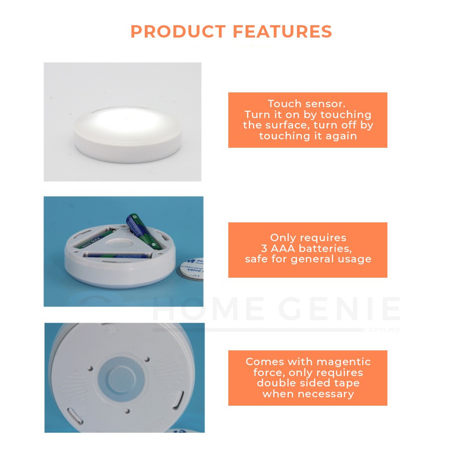 Touch Sensor Magnetic LED Round Night Light Tap Activated Power Saving by Home Genie