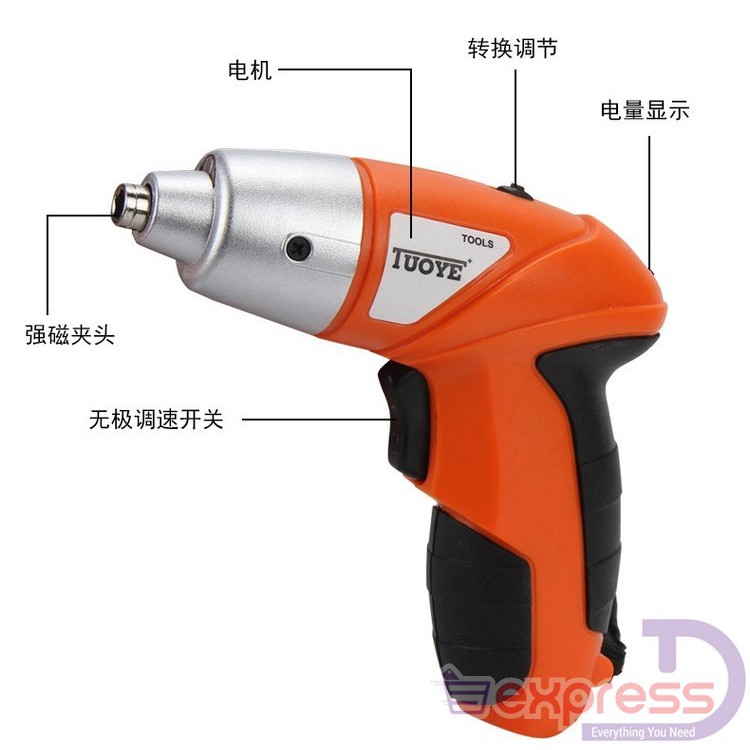 Touye 45pcs 4.8V 180 RPM Cordless Screwdriver Drill Kit