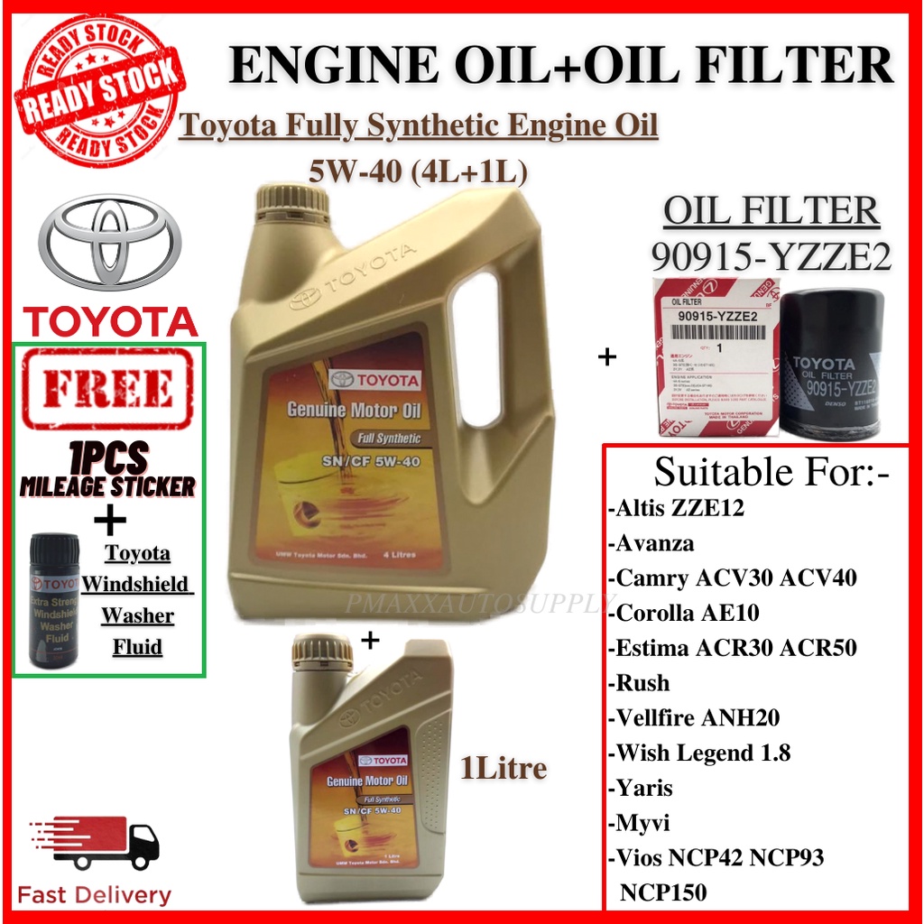 Toyota 5W40 Fully Synthetic SN/CF 5W40 Genuine Engine oil 4L+Oil 1L + Toyota Oil Filter #Toyota 5W40 #Fully Synthetic #