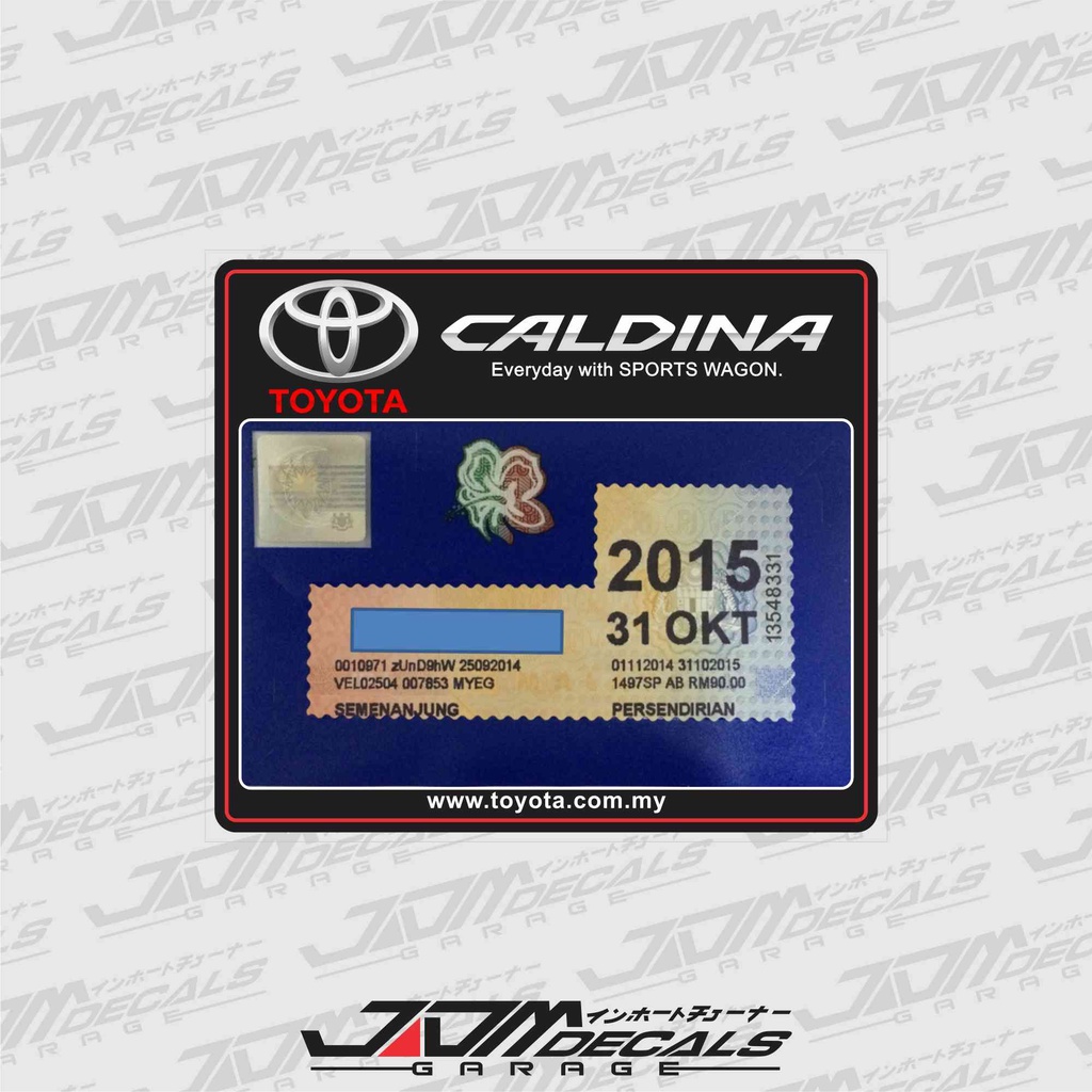 Toyota Caldina Roadtax Decal Sticker