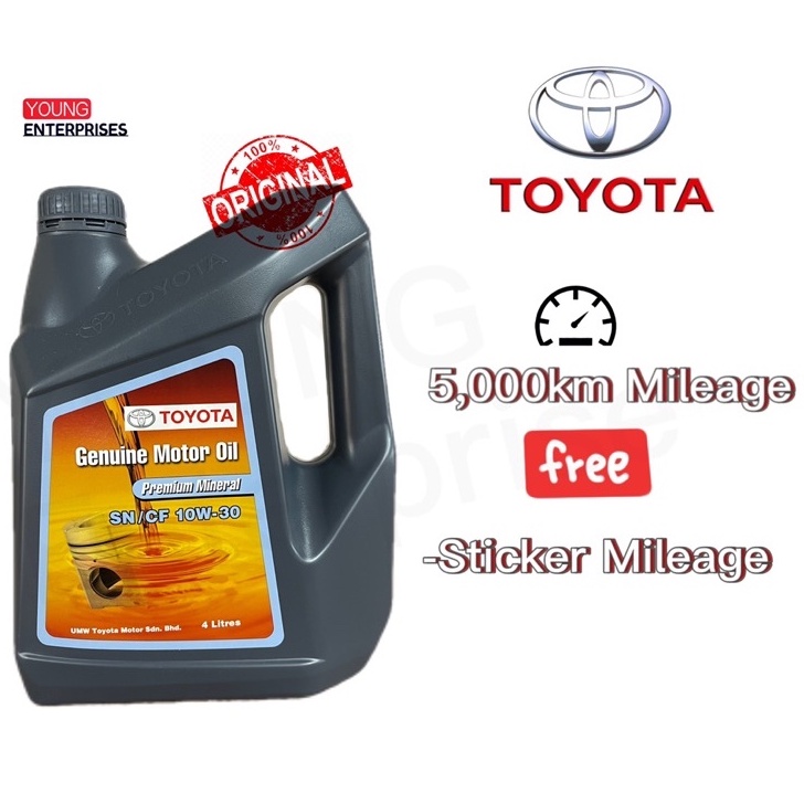 Toyota Engine Oil Genuine Motor Oil Premium Mineral Sn/Cf 10W-30 / 10W30 4L