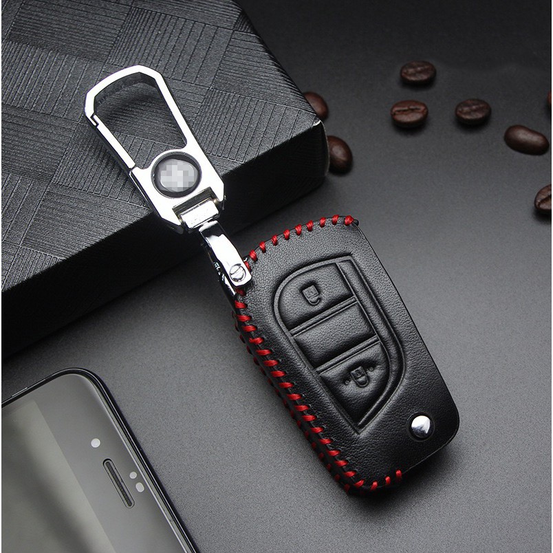 Toyota Hilux Rogue & Revo Single / Double Cab / Fortuner FLIP KEY Remote Hand-Sewn Cow Leather Car Key Cover Casing