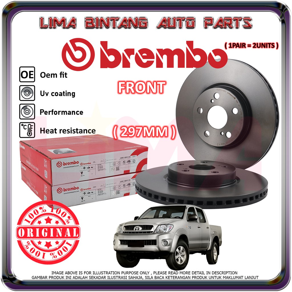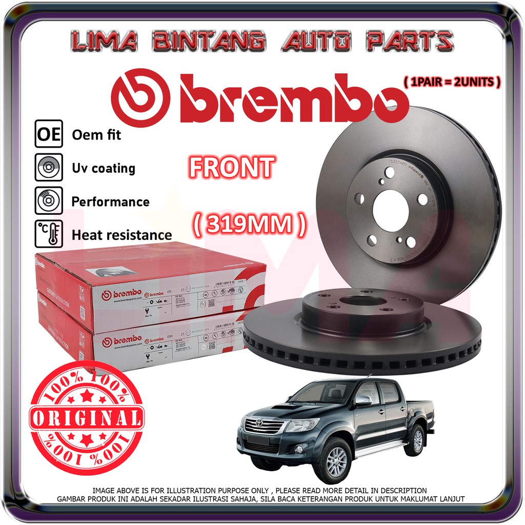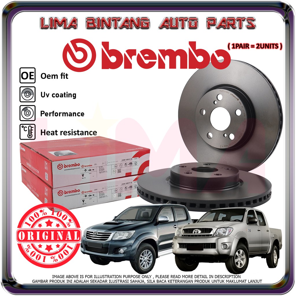 Toyota Hilux VIGO KUN25 , KUN26 Front Brake Disc Rotor 1Pair Brembo *Original* (2005-2015)
